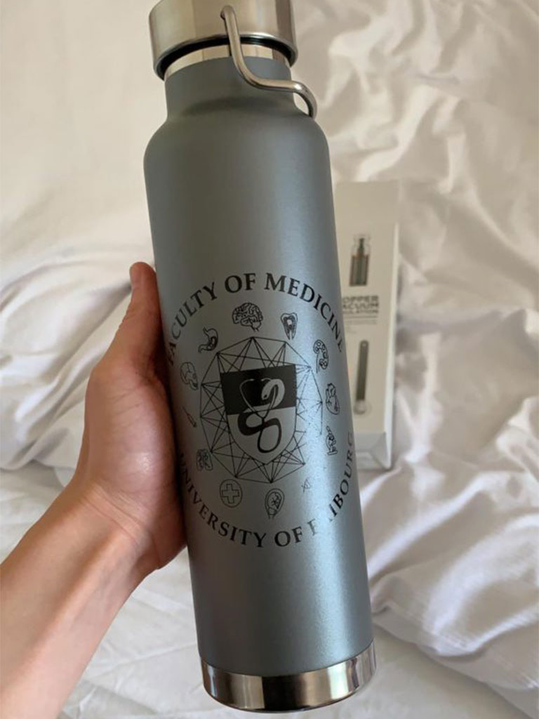 Que ce soit à travers une gourde stylée ou un pull classique de la FaMed, nous faisons tout pour créer un souvenir mémorable de cette belle période à l’Université de Fribourg !