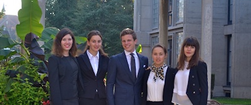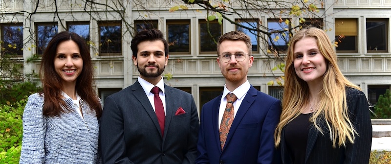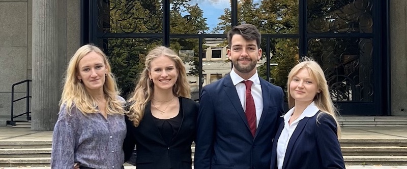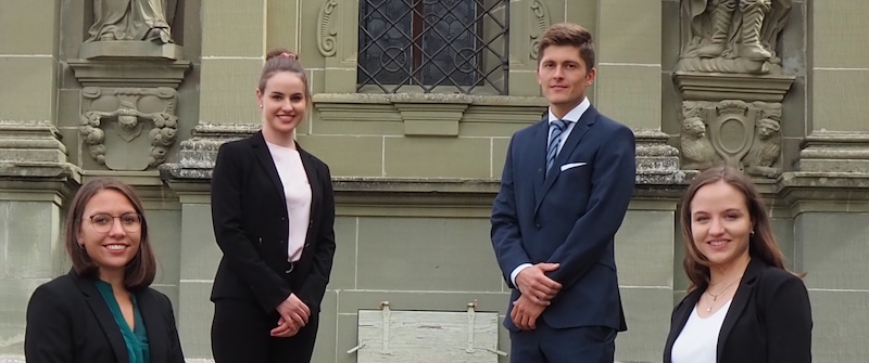 We are happy to introduce the new team selection of 2024-2025 representing the Université de Fribourg - Universität Freiburg at the 32nd Vis Moot ! From left to the right: Vera Bykova (coach), Tim Hogg (mootie), Viviane Molletta (mootie), Selda Barcedogmus (mootie).