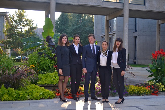 The team representing the University of Fribourg in the 22nd Vis Moot (from left to right): Nathalie Aymon (Coach), Corinne Harte, Alec Ray, Ekaterina Korolevskaya, Isabelle Cordey.