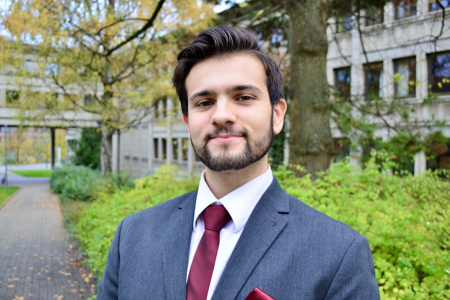 The team representing the University of Fribourg in the 30th Vis Moot (from left to right) Julia Suessmann (coach), Vanessa Maria Frese (coach, not on the photo), Aydin Sari, Simon Meier, Rahel Seeberger.